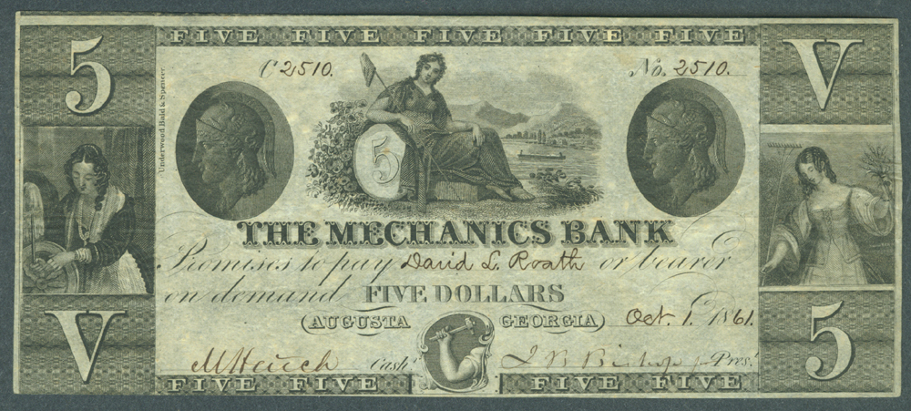 Georgia, Augusta - $5 Mechanics Bank (1831-1860s)