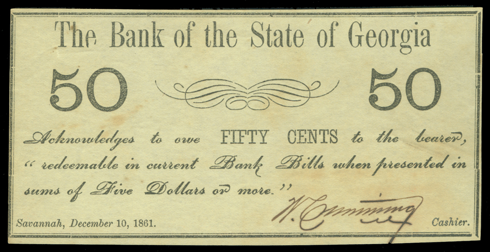 Georgia, Savannah - 50-Cents Bank of the State of Georgia (1815-1860s)