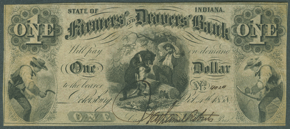 Indiana, Petersburg - $1 Farmers' and Drovers' Bank (c.1858-1862)