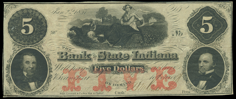 Indiana, No City Name - $5 Bank of the State of Indiana, Lafayette Branch