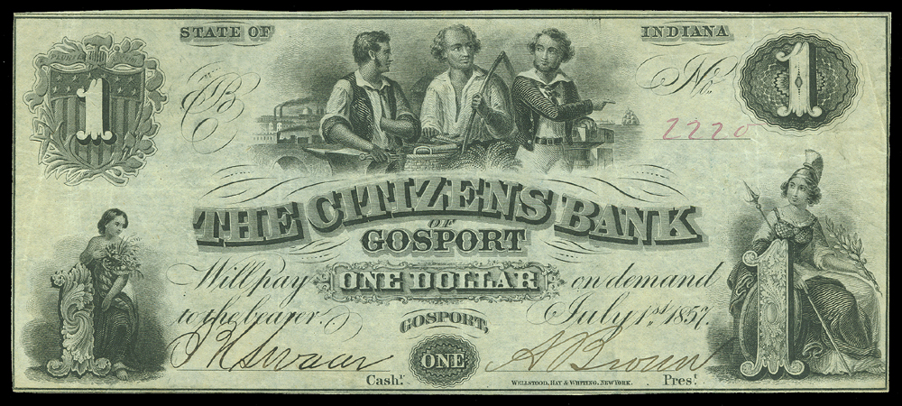 Indiana, Gosport - $1 Citizens Bank of Gosport (c.1857)