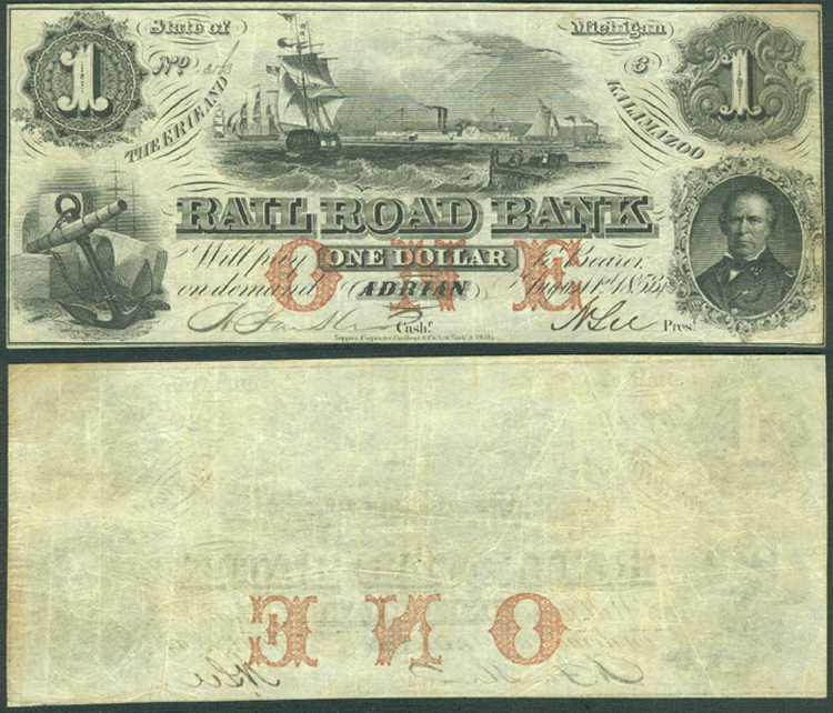 Michigan, Adrian - $1 Eire & Kalamazoo Rail Road Bank (1835-c.1841, 1853-1854)