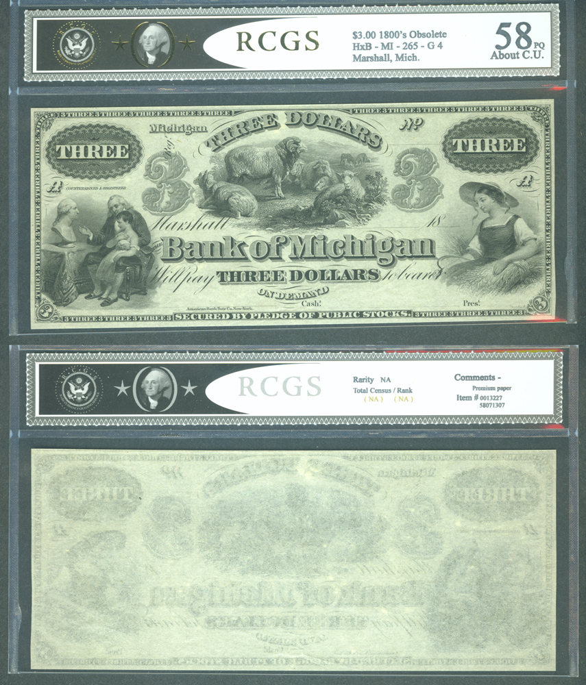 Michigan, La Grange - $5-$3-$1 Cass County Bank (1840s)