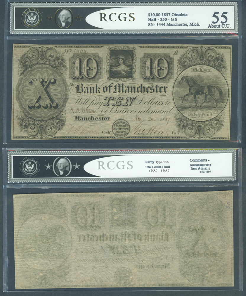 Michigan, Manchester - $10 Bank of Manchester (1837-1839)