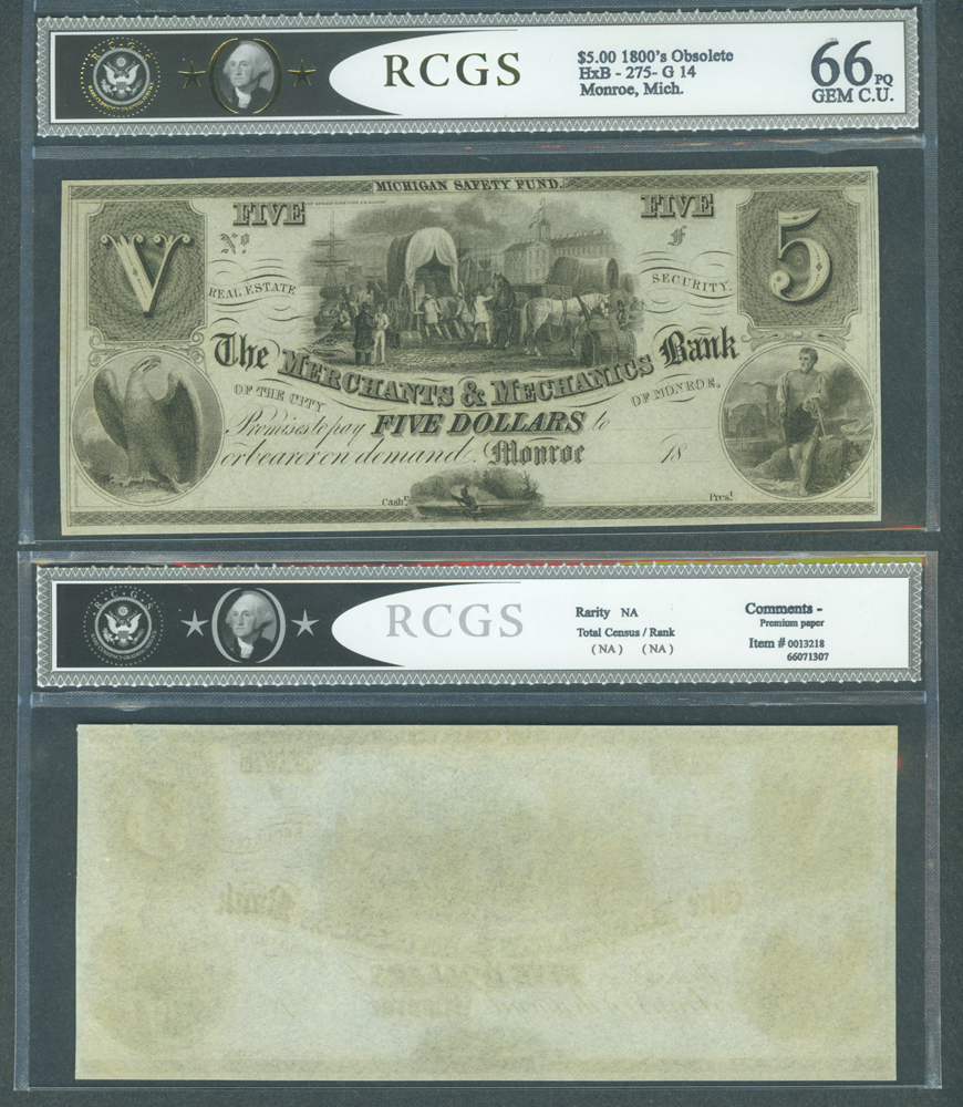 Michigan, Monroe - $5 Merchants and Mechanics Bank of the City of Monroe