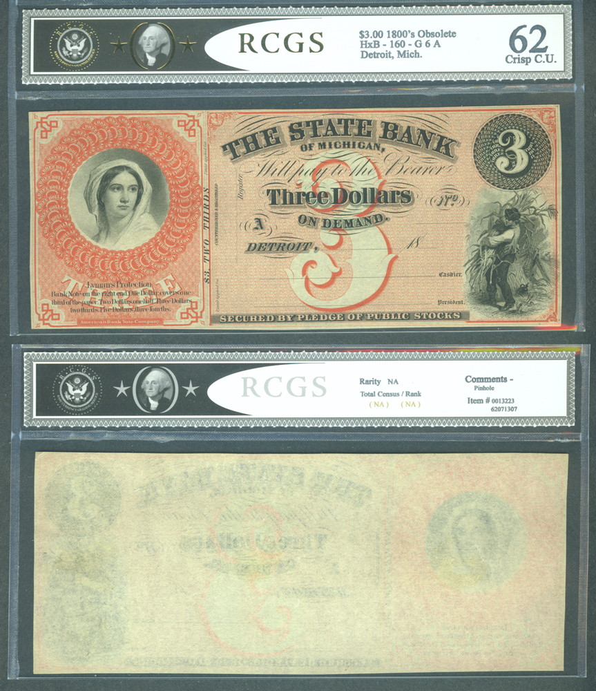 Michigan, Detroit - $3 State Bank of Michigan (1859-1864)