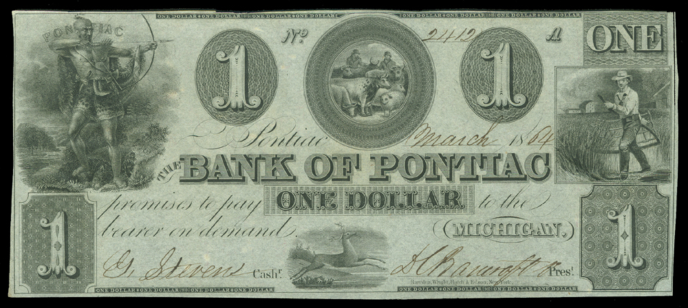 Michigan, Pontiac - $1 Bank of Pontiac (1835-1840s, 1860s)