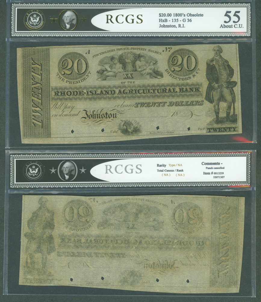 Rhode Island, Johnston - $20 Rhode Island Agricultural Bank (1823-1846)
