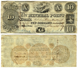 Wisconsin, Mineral Point - $10 Mineral Point Bank (c.1836-1841)