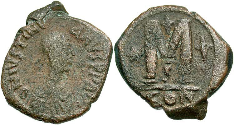 Maurice Tiberius, Æ Follis, Year 6 (587/588), Cyzicus, Officina 2