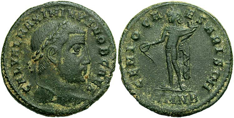 Note: Flip-over strike with exergue intact on the obverse, as well as the second X in the denomination across the robes of Phocas