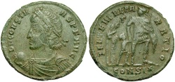 Bust facing, wearing crown and consular robes, mappa in right hand, cross in left