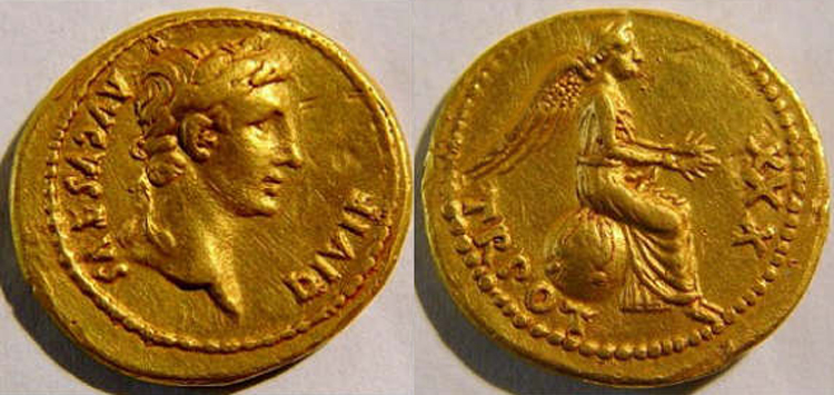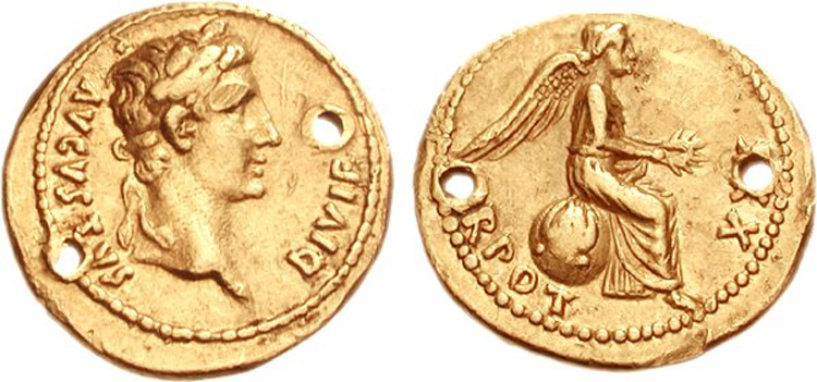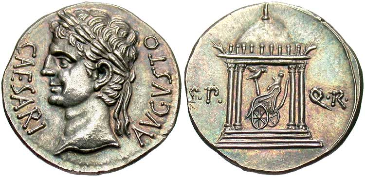 Augustus, AV Quinarius, 7 AD, Lugdunum