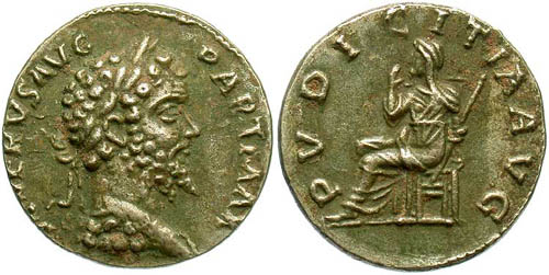 Marcus Aurelius and Lucius Verus standing, clasping hands