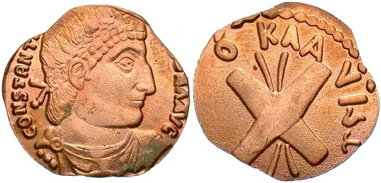 white metal. Bassem offered it to me as an authentic Roman coin, which I bought knowing it was a reproduction since this issue