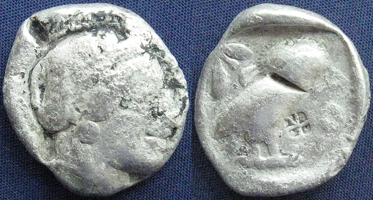 of the matrix. This indicates the flan was not made of Laurion silver,