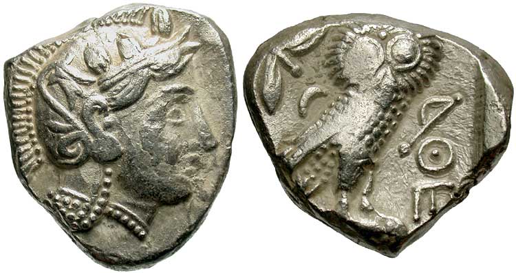 Attica-Athens, AR Tetradrachm, Transitional Style, c.393-350 BC