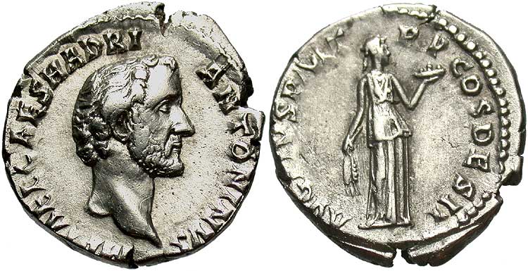 Roman Imperial, Antoninus Pius, AR Denarius, Near End of 138, Rome