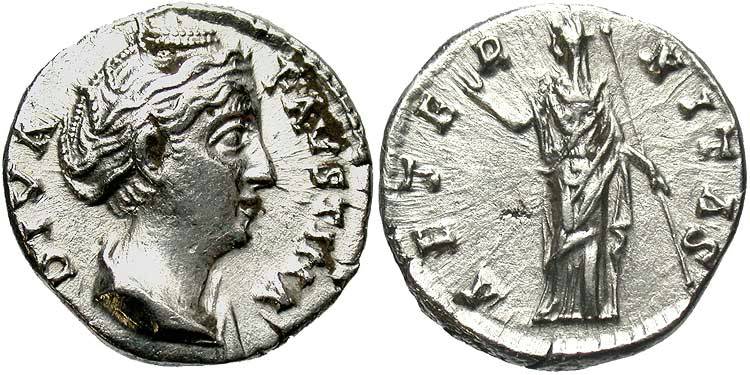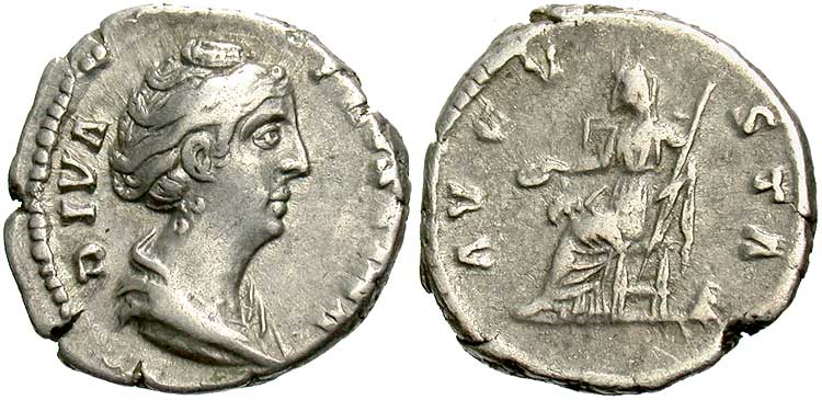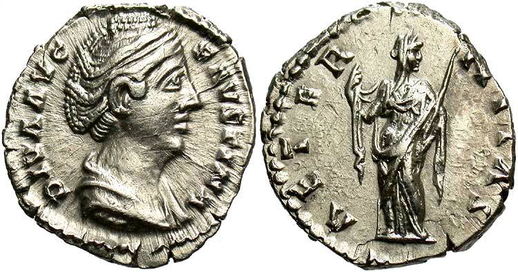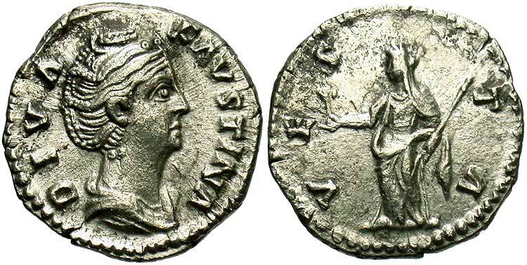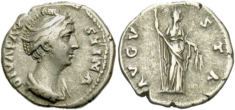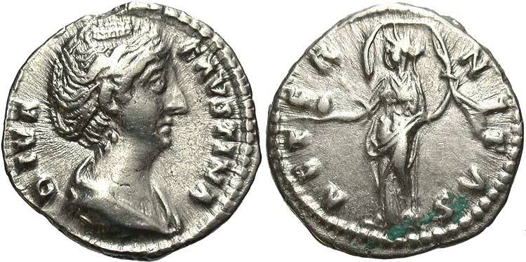 Faustina I, AR Imitative Denarius, After 140/141, Rome for type