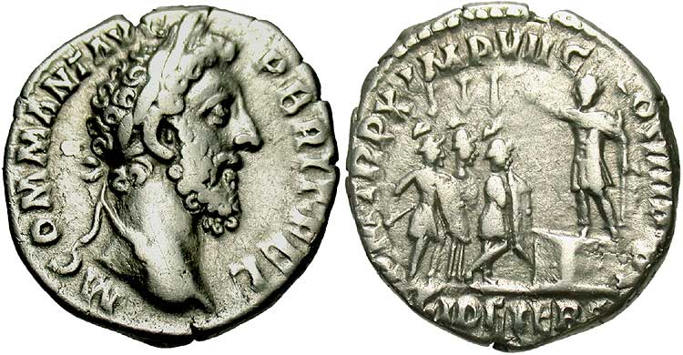 Note: The C V P P exergue is abbreviated for Commodus' 5th consulate.
