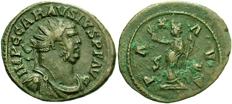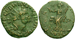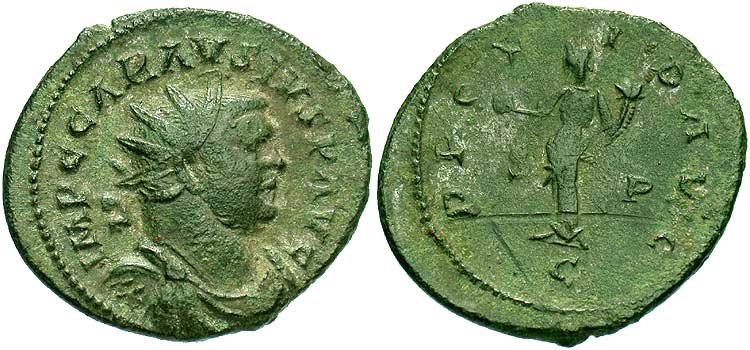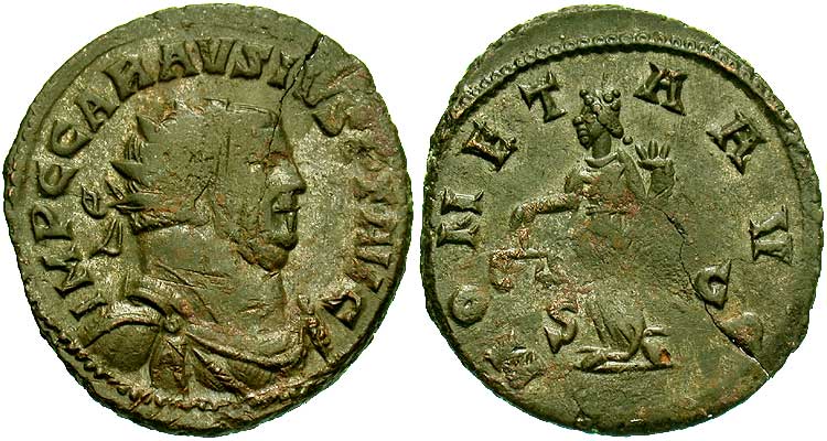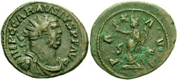 Note: Variant for obverse legend - the emperor's name is misspelled - IMP CARAVSIVS P F AVG expected
