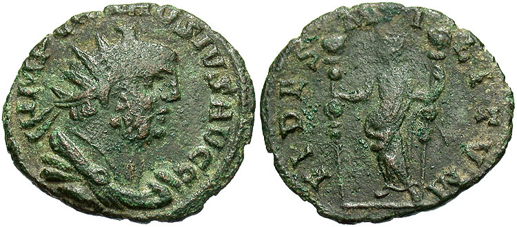 Note: Overstruck on an antoninianus of Victorinus with SALVS AVG reverse. IMP C