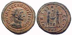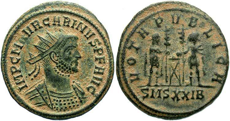 Marcus Aurelius Carinus was born c. 249. He became caesar in 282 and augustus in 283. While pursuing Diocletian's