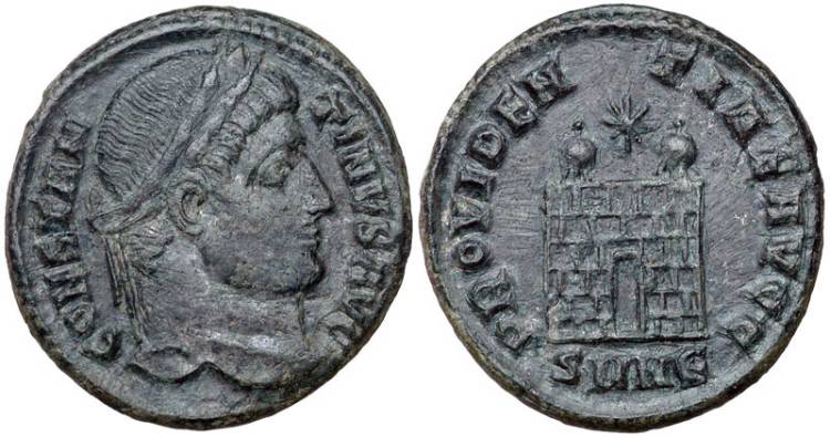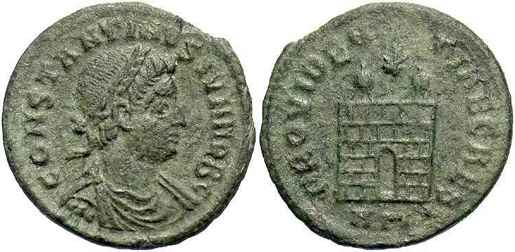 Note: Mule of Constantine I obverse and a caesar reverse.