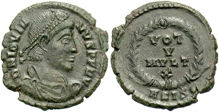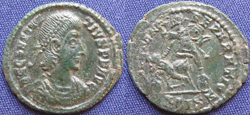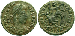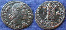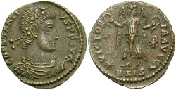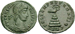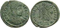 Note: This solidus was issued on the occasion of the celebrations of the Quinquennalia of Constans on Dec. 25, 337. The reverse
