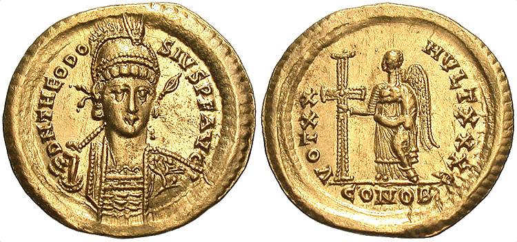 from early in the reign of Theodosius, possibly dating immediately prior to the beginning of his sole reign in 408,