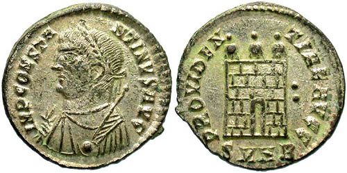 Constantius II, AE3, 326, Heraclea, Officina 5