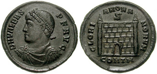 earliest issues to use the "campgate" design, minted in 295 (click on