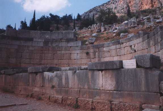 Near the top of the complex is the wonderful open air theater. Looking down from the theater, the Temple of Apollo can be seen on the left and the Treasury of Athens on the right.