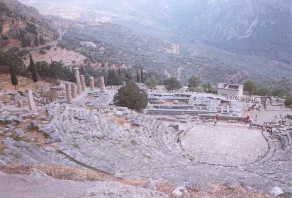 Photos taken in 1997 of Delphi, Greece. ![]() As we approach the sanctuary area of Apollo, it is a beautiful day in Greece. Our tour starts with where it all began. The Marmara at Delphi and the Gymnasium can be seen in the small clearing in the distance toward the bottom middle left.