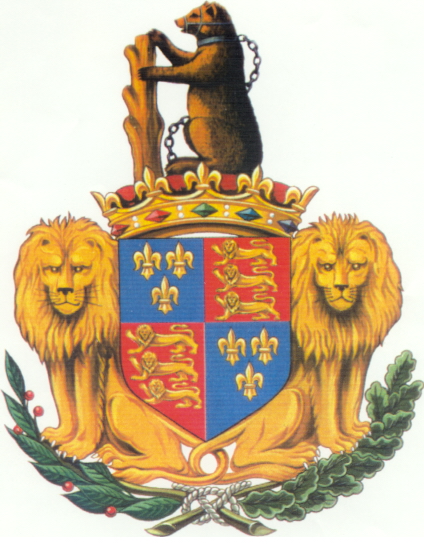 includes the Warwick emblem of the "Bear and Ragged Staff" on top.