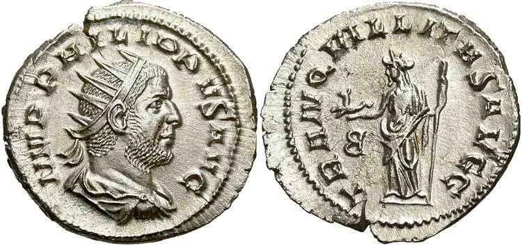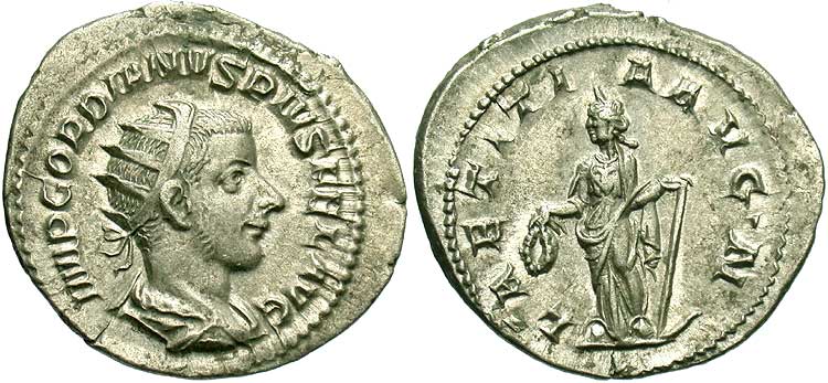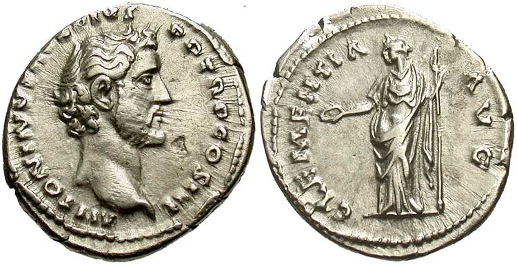 Uberitas standing left, purse in right hand, cornucopiae in left |