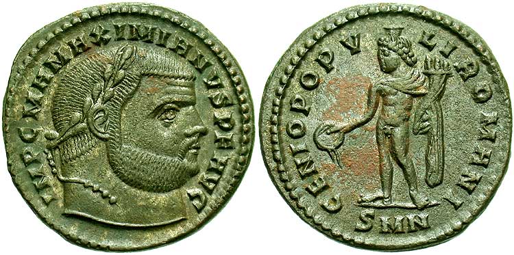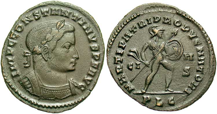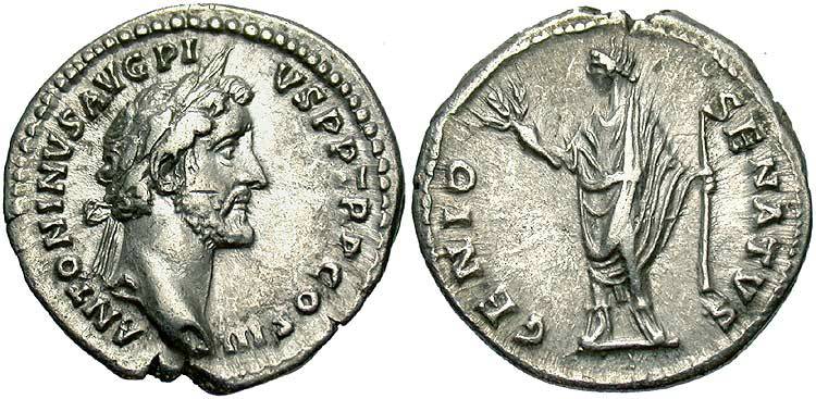 Genius of the Roman Senate standing facing in long robes, head left,