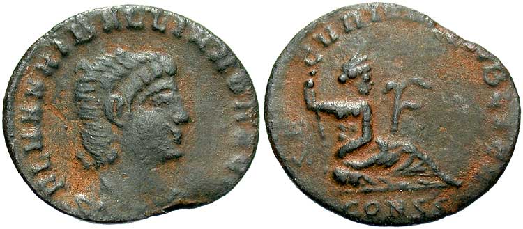 Vesta seated left, palladium in right hand, scepter in left