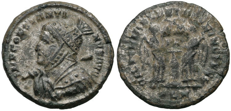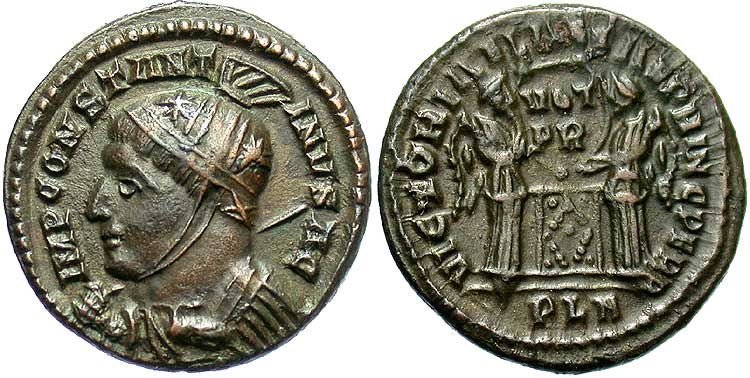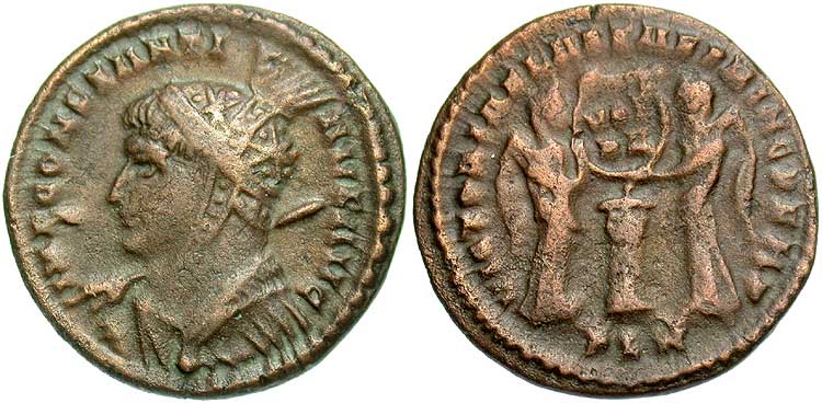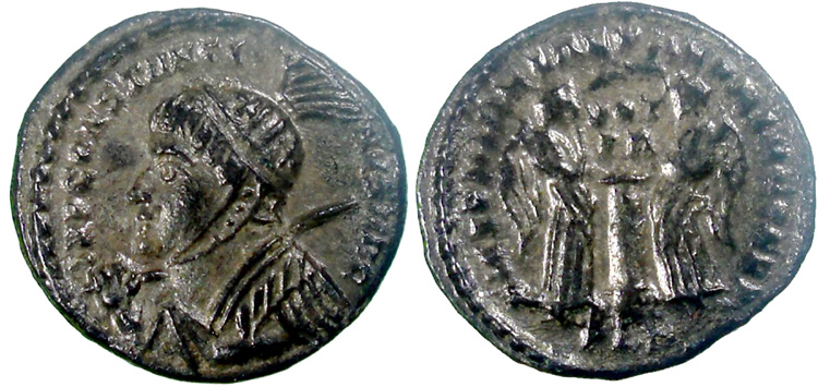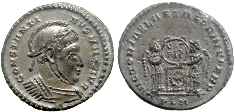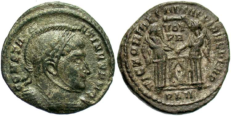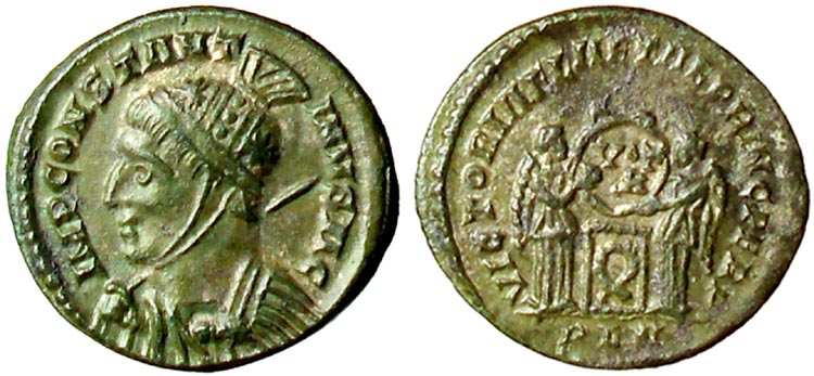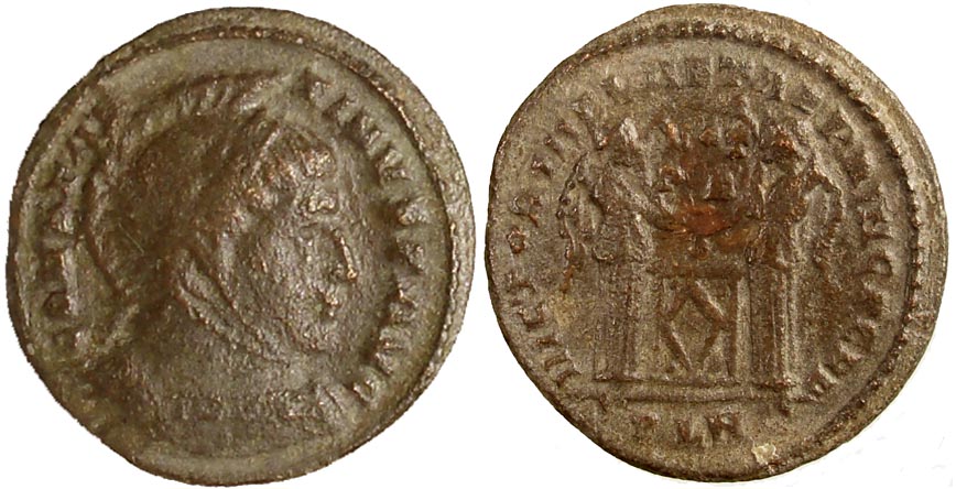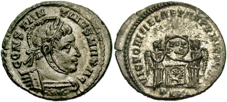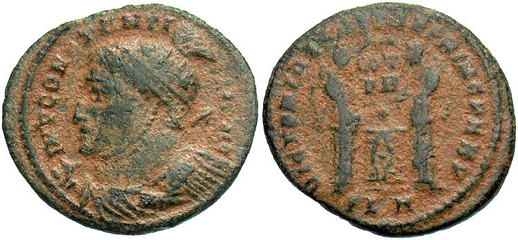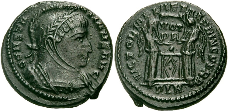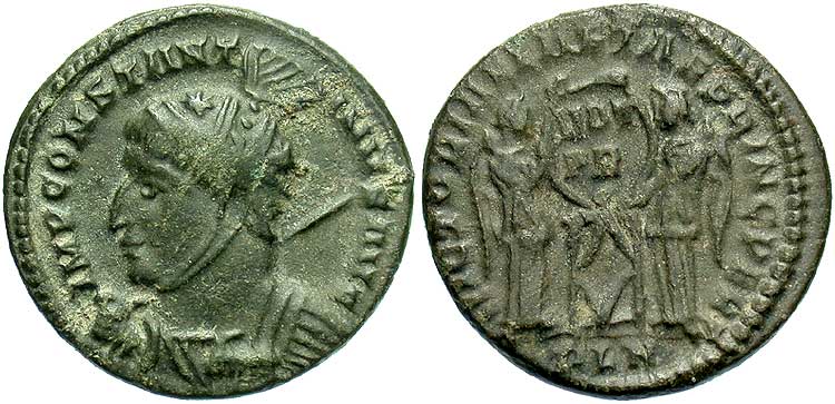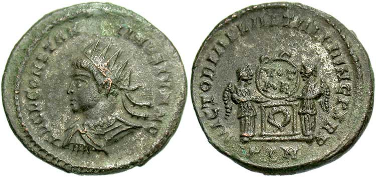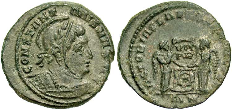 facing busts for the radiate type for Constantine II.