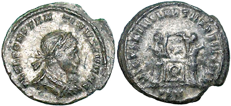but was unable to verify. Perhaps this example is another of the "shield on altar" type, as RIC does not describe in any other