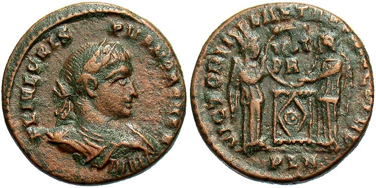 sons of Constantine". Also, RIC notes for #158, an example with a shield on the altar, referring to the Senckler collection,