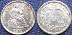 United States of America, Half Dime, Seated Liberty, 1871, Philadelphia Mint