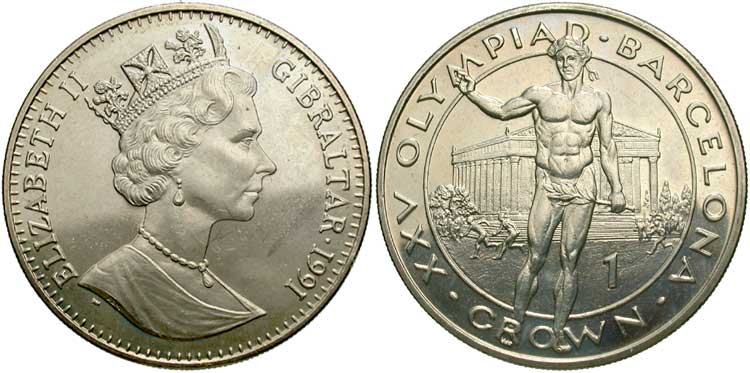 Gibraltar, 1 Crown, 1991