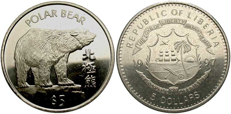 Liberia, 5 Dollars, 1997