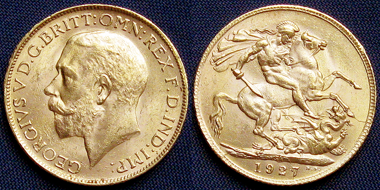 St. George slaying the dragon, SA on ground line, 1927 in exergue