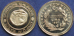 Laurels enclosing 1.000.000 / LIRA / 1997, Turkish symbol above