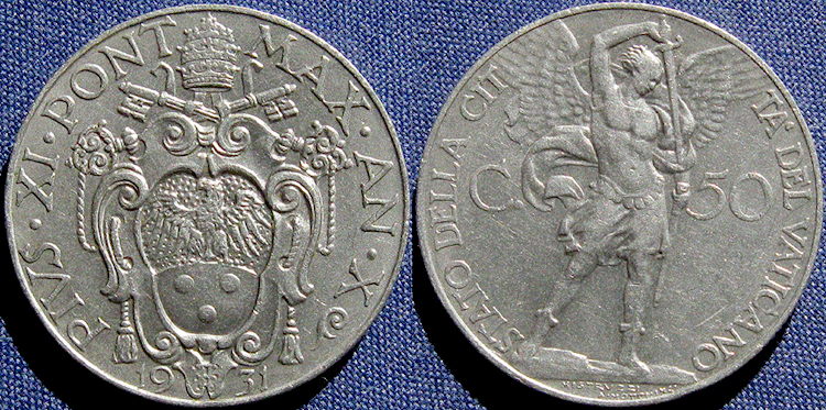 Vatican, Pope Pius XI, 50 Centisimi, 1931, Regnal Year 10, Rome