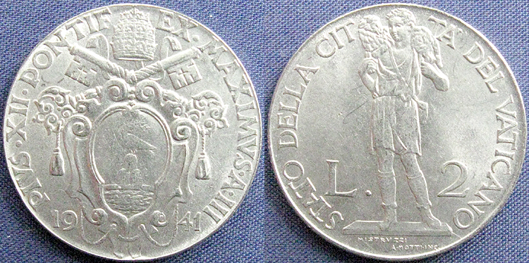 Vatican, Pope Pius XII, 2 Lire, 1941, Regnal Year 3, Rome