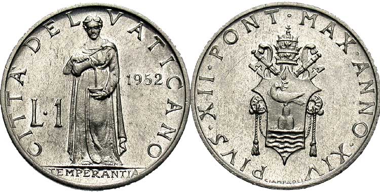 Pope Pius XII, AL 2 Lire, 1952, Rome