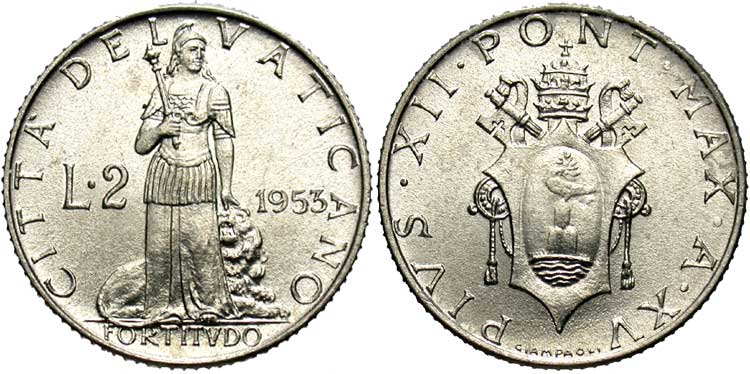 Pope Pius XII, AL 2 Lire, 1953, Rome